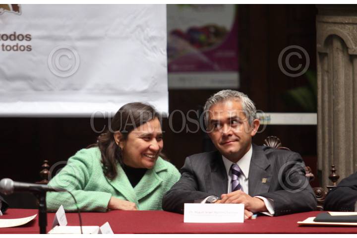 MÉXICO, D.F., 03NOVIEMBRE2010.- Leticia Bonifaz, consejera jurídica conversa con Miguel Ángel Mancera procurador capitalino durante la instalación de la Comisión Mixta GDF - Gobierno Electo de Oaxaca que se realizo en el Antiguo Palacio del Ayuntamiento. FOTO: RODOLFO ANGULO/CUARTOSCURO.COM