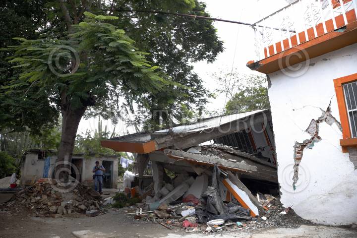HUEHUETLÁN EL CHICO, PUEBLA, 28NOVIEMBRE2019.- Este día se conmemoro el 108 aniversario de la promulgación del Plan de Ayala en la comunidad de Ayoxuxtla en la mixteca poblana. En la imagen la fachada del pequeño museo donde fue firmado el documento, se puede observar que una parte se derrumbó por el sismo del 19 de septiembre del 2017 y aun no ha sido reparado. FOTO: MARGARITO PÉREZ RETANA /CUARTOSCURO.COM