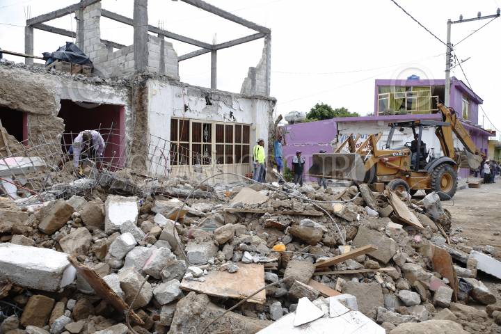 TEHUITZINGO, PUEBLA, 23SEPTIEMBRE2017.- Autoridades y voluntarios realizan labor de remoción de escombros, limpieza y demolición de viviendas dañadas en el municipio de Tehuitzingo, tras el sismo de 7.1 grados del pasado 19 de septiembre. FOTO: HILDA RÍOS /CUARTOSCURO.COM