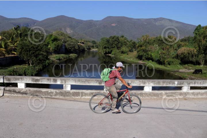 COHETZALA, PUEBLA, 28NOVIEMBRE2019.- Un joven en bicicleta cruza el puente sobre el río Nexapa que recorre el occidente de este municipio. FOTO: MARGARITO PÉREZ RETANA /CUARTOSCURO.COM