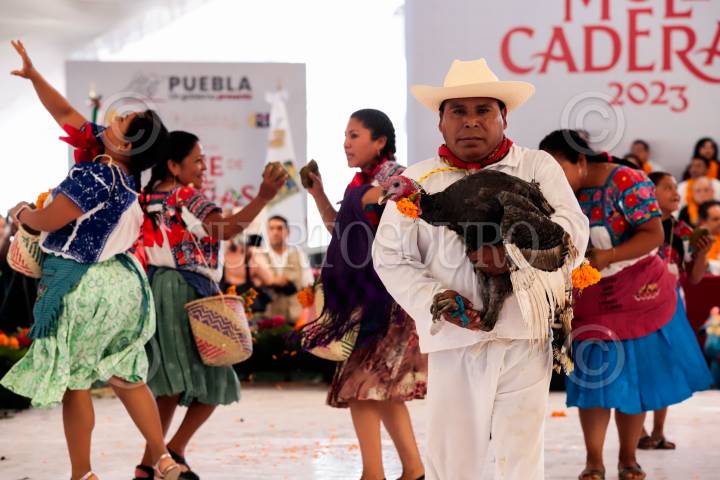 TEHUACÁN, PUEBLA, 19OCTUBRE2023.- Sergio Salomón Céspedes Peregrina, gobernador del estado, encabezó el evento del inicio de la temporada 2023 del Mole de Caderas, en la Hacienda La Carlota en el municipio de Tehuacán. Bailes con animales amenizaron la ceremonia de inicio de esta fiesta popular con el Mole, alimento típico de Puebla. FOTO: MIREYA NOVO/CCUARTOSCURO.COM.