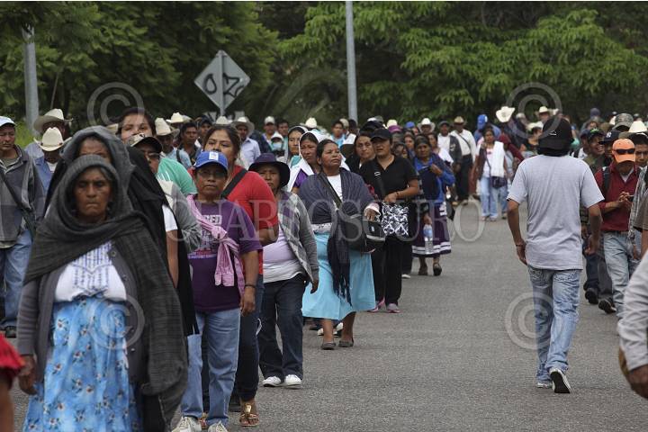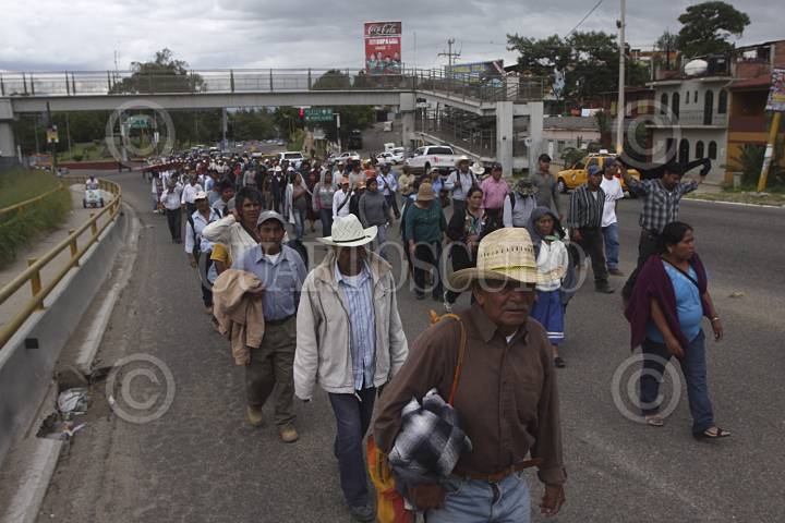OAXACA, OAXACA, 14JULIO2014.- Pobladores pertenecientes al municipio de San Juan Mixtepec marcharon en la ciudad para exigir al gobierno del estado la aprehensión de los responsables de más de 15 homicidios ocurridos en los últimos 4 años, de los cuales ellos responsabilizan a la organización Antorcha Campesina, misma que dijeron tiene las mano es metidas en un conflicto agrario que sostienen con Santo Domingo Yosoñama, localidad que es asesorada por Antorcha Campesina. FOTO: ARTURO PÉREZ ALFONSO /CUARTOSCURO.COM