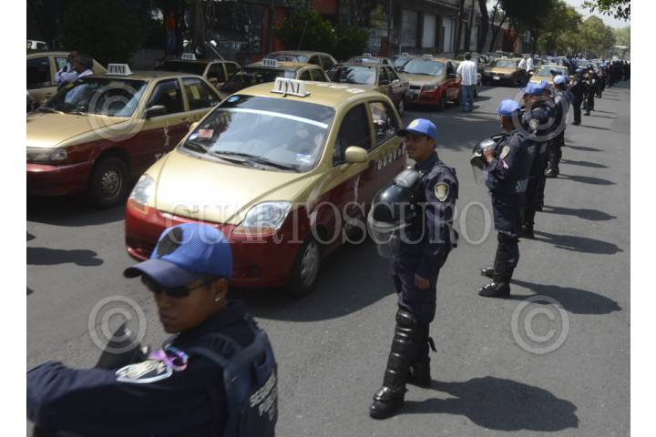 MEXICO, D.F., 09OCTUBRE2014.- Un grupo de taxistas fue interceptado por elementos de la policía en la diagonal de 20 de Noviembre e Isabel la Católica, en la colonia Obrera, cuando intentaban llegar al Zócalo para manifestarse. FOTO: ARMANDO MONROY /CUARTOSCURO.COM