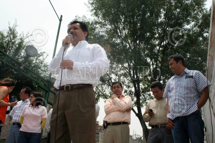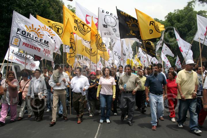 MÉXICO, D.F., 28JUNIO2007.- Los diputados del PRD Luis Sánchez Jiménez y Juan Hugo de la Rosa encabezaron la marcha del grupo "Los de Abajo" de la Secretaría de Desarrollo Social en Reforma a la Secretaría de Gobernación. FOTO: ISAAC ESQUIVEL/CUARTOSCURO.COM
