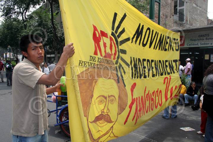 MÉXICO, D.F., 28JUNIO2007.- Miembros del grupo "Los de Abajo" y simpatizantes del PRD realizaron una marcha de la Secretaría de Desarrollo Social en Reforma a la Secretaría de Gobernación, en apoyo a la huelga de hambre que realiza el senador Héctor Miguel Bautista López. FOTO: ISAAC ESQUIVEL/CUARTOSCURO.COM