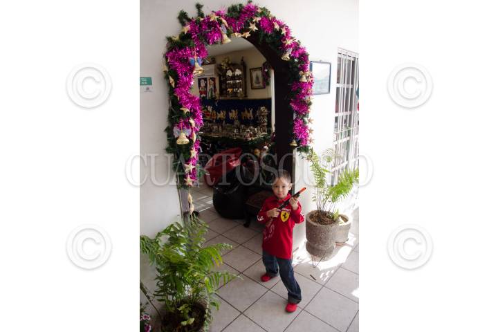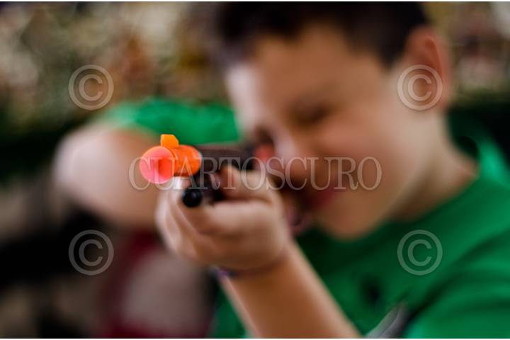 LOS MOCHIS, SINALOA, 25DICIEMBRE2011.- Un niño apunta con un rifle de juguete que recibió este día en festejo de la navidad en la Sindicatura de la Bahía de Topolobampo perteneciente al municipio de Ahome en el estado del pacífico-norte de Sinaloa. Éste día miles de niños recibieron juguetes que les trae "Santa Claus" o el "Niño Dios". FOTO: MISAEL VALTIERRA/CUARTOSCURO.COM