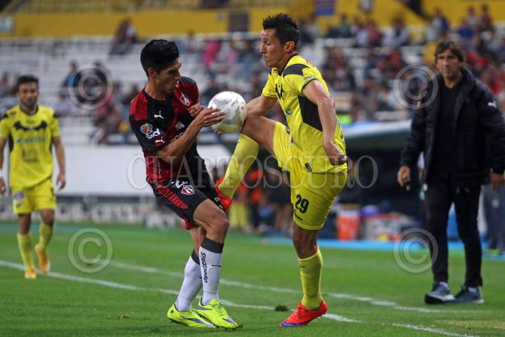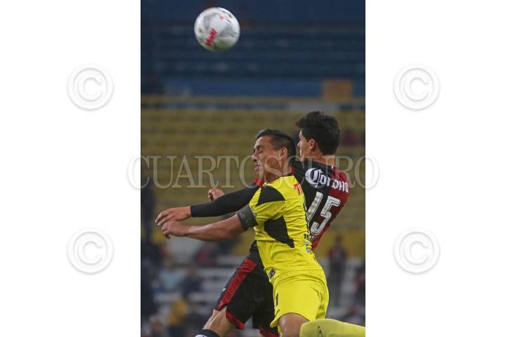 GUADALAJARA, JALISCO. 16FEBRERO2015.- Brayan Martínez jugador de Murciélagos disputa un balón a José Madueña de Atlas, durante el partido correspondiente a la Jornada 4 del Torneo Clausura 2016 de la Copa MX, entre los Zorros del Atlas y los Murciélagos de los Mochis, en el estadio Jalisco. FOTO : FERNANDO CARRANZA GARCIA / CUARTOSCURO