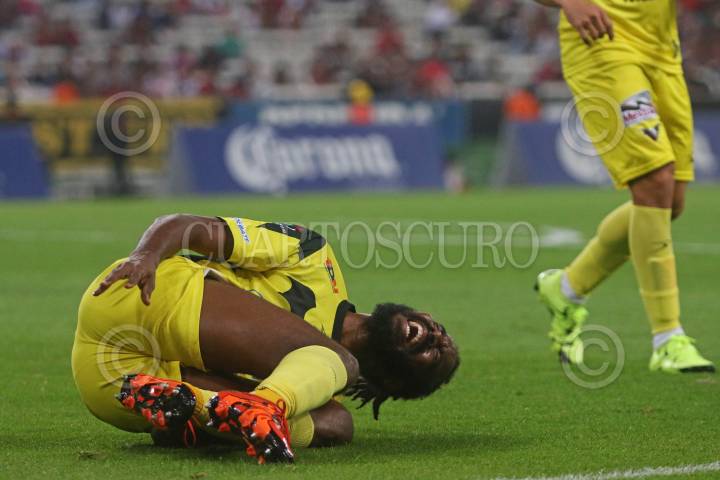 GUADALAJARA, JALISCO. 16FEBRERO2015.- Yohance Marshall jugador de Murciélagos se queja de una entrada energica, durante el partido correspondiente a la Jornada 4 del Torneo Clausura 2016 de la Copa MX, entre los Zorros del Atlas y los Murciélagos de los Mochis, en el estadio Jalisco. Al final el marcador se inclina a la escuadra del atlas 3-1. FOTO : FERNANDO CARRANZA GARCIA / CUARTOSCURO