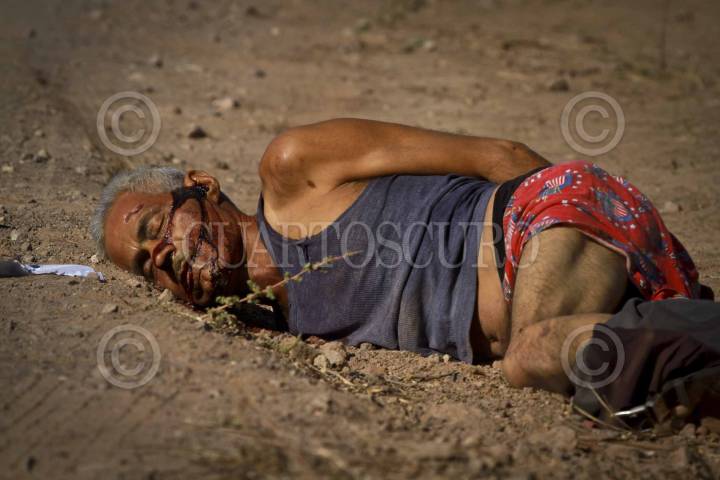 CULIACAN, SINALOA, 04ABRIL2013.- En las inmediaciones de un campestre ubicado en el poblado de Agua Salada, perteneciente a la sindicatura de Pericos, Mocorito, una persona fue encontrada asesinada con varios impactos de bala y un mensaje que decía "Por dedo y balcon¨ . Agentes del Ministerio Público y peritos de la Procuraduría de Justicia realizaron las investigaciones de ley. FOTO: RASHIDE FRÍAS /CUARTOSCURO.COM