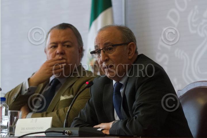 CIUDAD DE MÉXICO, 20MARZO2018.- Francisco del Río, directora general para Europa, y Mohamed Chafiki, embajador de Marruecos en México, durante la presentación de actividades durante la semana de la Francofonía en México, que se realizó en la cancillería. FOTO: MOISÉS PABLO /CUARTOSCURO.COM