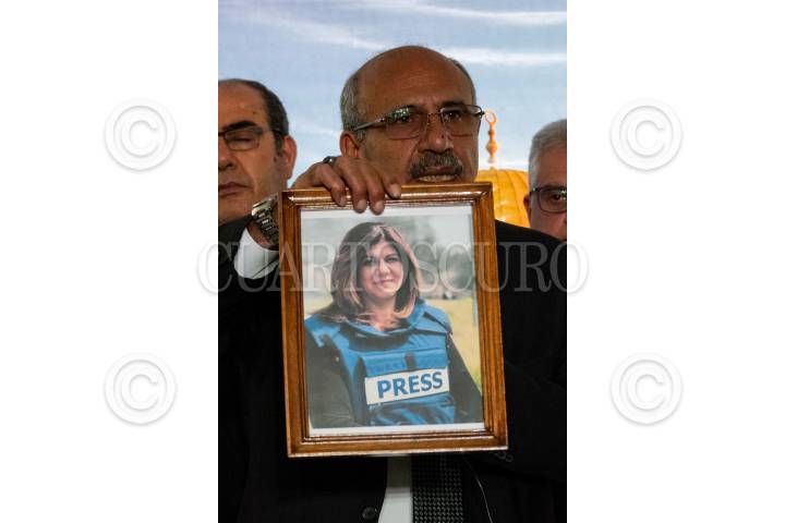 CIUDAD DE MÉXICO, 19OCTUBRE2023.- Mohamed Saadat, embajador de la República de Palestina en México, muestra una foto de la periodista Shireen Abu Akleh, (asesinada por el ejército israelí) durante la conferencia de prensa en compañía de embajadores de Marruecos, Jordania, Malasia, Turquía, Líbano, por mencionar algunos, para dar recuento de las perdidas y daños que ha provocado el conflicto bélico entre Hamas e Israel. Condeno las medidas que Israel ha tomado con el pueblo palestino desde el hacinamiento y los bordados a un hospital que reportó más de 500 perdidas humanas. FOTO: GALO CAÑAS/CUARTOSCURO.COM