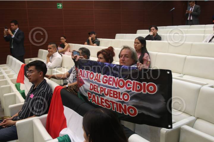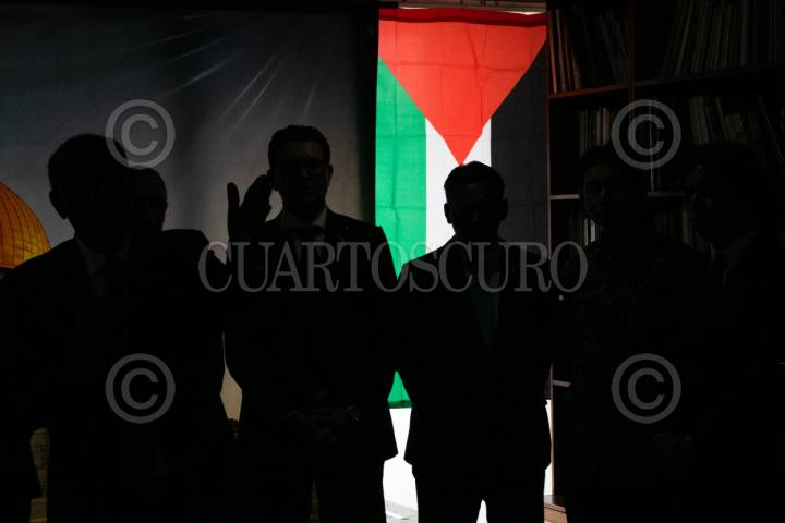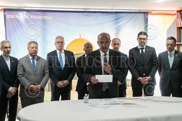CIUDAD DE MÉXICO, 15MAYO2024.- Mohamed Saadat, embajador de Palestina en México, afirmó que "el mundo está cansado que el Estado de Israel actúe por encima de la ley", el día de hoy el pueblo palestino conmemora la Nabka (que en árabe significa “catástrofe”, y hace referencia a los 700.000 palestinos que huyeron o fueron expulsados de lo que hoy es el Estado de Israel antes y durante la guerra que rodeó su creación en 1948). El diplomático estuvo acompañado por varios embajadores de la zona. También señaló que en los últimos siete meses "Israel ha asesinado a más de 35 mil palestinos, entre ellos 15 mil niños". Y pidió a la comunidad internacional su intervención para detener el genocidio israelí en Palestina. FOTO: MOISÉS PABLO/CUARTOSCURO.COM