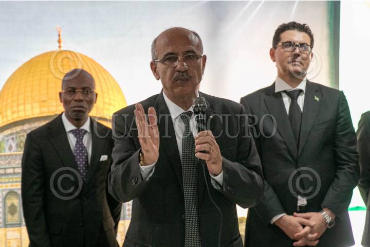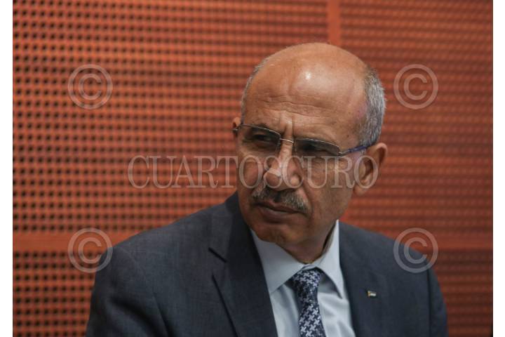 CIUDAD DE MÉXICO, 19OCTUBRE2023.- Mohamed Saadat, embajador de la República de Palestina en México, ofreció conferencia de prensa en compañía de embajadores de Marruecos, Jordania, Malasia, Turquía, Líbano, por mencionar algunos, para dar recuento de las perdidas y daños que ha provocado el conflicto bélico entre Hamas e Israel. Condeno las medidas que Israel ha tomado con el pueblo palestino desde el hacinamiento y los bordados a un hospital que reportó más de 500 perdidas humanas. FOTO: GALO CAÑAS/CUARTOSCURO.COM