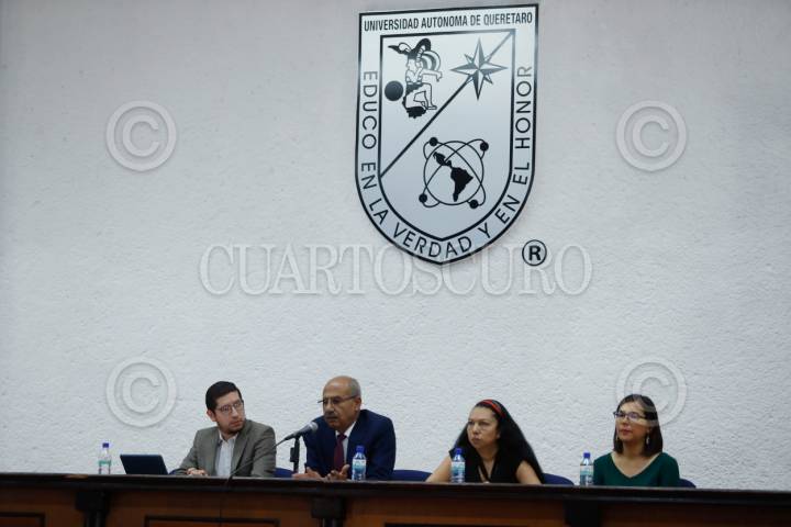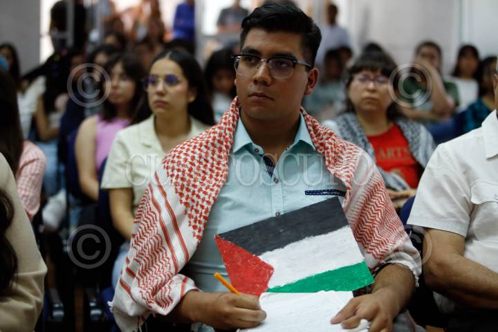 QUERÉTARO, QUERÉTARO, 02MAYO2024.- El embajador de Palestina en México, Mohamed Saadat, impartió la ponencia "Palestina hoy: su historia, su gente y su lucha", junto a la activista por Palestina, la Dra. Ara Galán, como parte de las actividades organizadas por la Licenciatura en Relaciones Internacionales de la Facultad de Ciencias Políticas y Sociales de la Universidad Autónoma de Querétaro. FOTO: CÉSAR GÓMEZ/CUARTOSCURO.COM