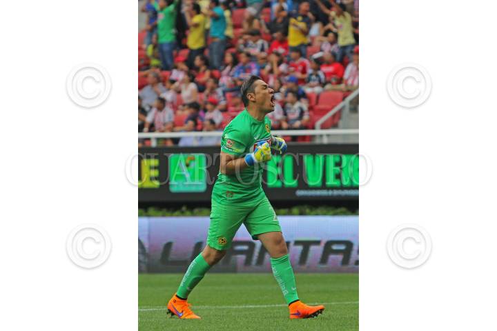 ZAPOPAN, JALISCO. 26ABRIL2015.- El guardameta del América Moisés Muñoz celebra la anotación de su equipo, esto en partido correspondiente a la Jornada 15 del Torneo Clausura 2015 de la Liga MX, en donde se enfrentaron los equipos de las Chivas de Guadalajara frente a las Águilas del América, en partido que se jugó en el Estadio Omnilife. FOTO: FERNANDO CARRANZA GARCIA / CUARTOSCURO.COM
