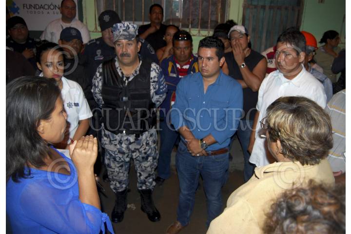 MEDELLÍN DE BRAVO, VERACRUZ., 25ENERO2014.- José Moisés Sánchez, reportero del periódico La Unión, a la derecha del alcalde de Medellín, Omar Cruz Reyes, durante una reunión con vecinos vigilantes. La noche de este domingo la Procuraduría General de Justicia de Veracruz confirmó el hallazgo sin vida del comunicador luego de ser privado de su libertad el pasado 2 de Enero. Las indagatorias vinculan directamente al presidente municipal de dicho municipio. FOTO: ESPECIAL / ARCHIVO / CUARTOSCURO.COM