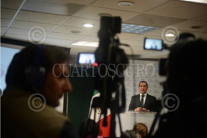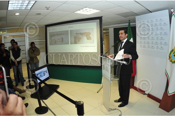 XALAPA, VERACRUZ 25ENERO15.- Esta noche el fiscal de la Procuraduría General de Justicia, Luis Ángel Bravo, ofreció una conferencia de prensa para dar a conocer el asesinato del periodista Moisés Sánchez. El cuerpo fue hallado dentro de bolsas negras durante la noche de este sábado en la zona de Manlio Fabio Altamirano. El presunto implicado en el asesinato dijo que fue Martín López Meneses, chofer y escolta del alcalde de Medellín de Bravo, Omar Cruz Reyes, quien ordenó la ejecución. FOTO: RUBÉN ESPINOSA / CUARTOSCURO.COM
