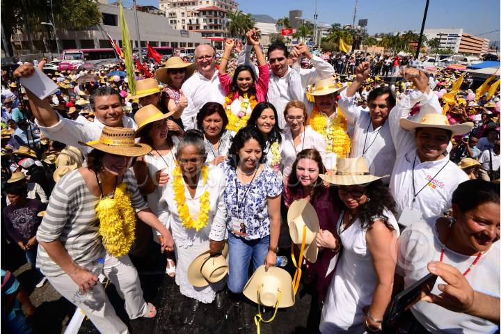 ACAPULCO, GUERRERO, 08MARZO2015.- Beatriz Mojica inició su campaña como candidata del Partido de la Revolución Democrática a la gubernatura del estado con un acto proselitista en el Puerto. La abanderada del PRD estuvo acompañada de Graco Ramírez, gobernador de Morelos; y Silvano Aureoles Conejo, candidato del PRD a la gubernatura de Michoacán. FOTO: JOSÉ I. HERNÁNDEZ / CUARTOSCURO.COM