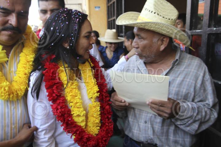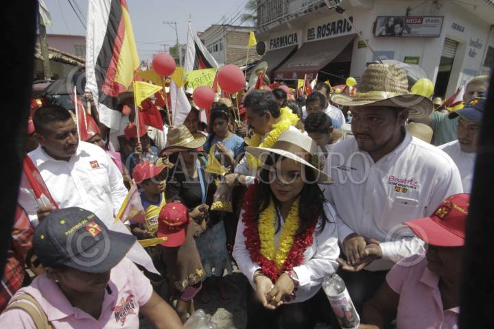AYUTLA DE LOS LIBRES, GUERRERO, 07ABRIL2015.- Beatriz Mojica, candidata del PRD y PT a la gubernatura del estado, realizño un recorrido con militantes del PT por las calles del poblado de Tecoanapa. FOTO: BERNANDINO HERNÁNDEZ /CUARTOSCURO.COM