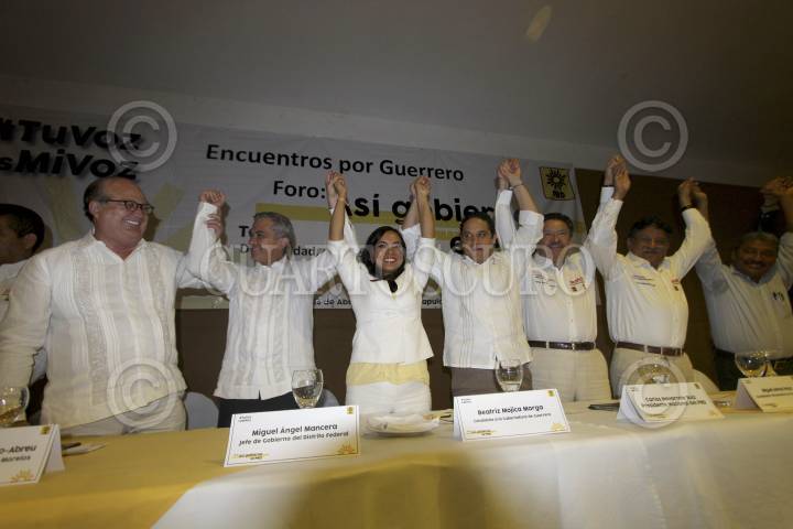 ACAPULCO, GUERRERO, 26ABRIL2015.- Beatriz Mojica Moraga, candidata del PRD a la gubernatura del Estado, se reunió con los gobernadores Graco Ramíres, Miguen Ángel Mancera, jefe de gobierno del D.F., y Carlos Navarrete, presidente nacional del PRD, durante su campaña por la gubernatura del estado. FOTO: BERNANDINO HERNÁNDEZ /CUARTOSCURO.COM