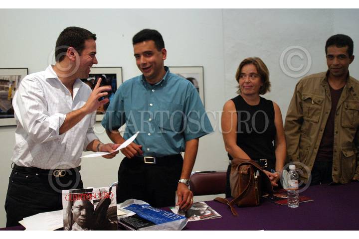México, D.F. 12 AGOSTO 2004.- El fotoperiodista Daniel Aguilar, inauguró la exposición "Haití", en el Centro de la Imagen. Fue acompañado por los periodistas Carlos Loret de Mola, Ana Luisa Anza y José Antonio López. FOTO: Sandra Perdomo/CUARTOSCURO.COM