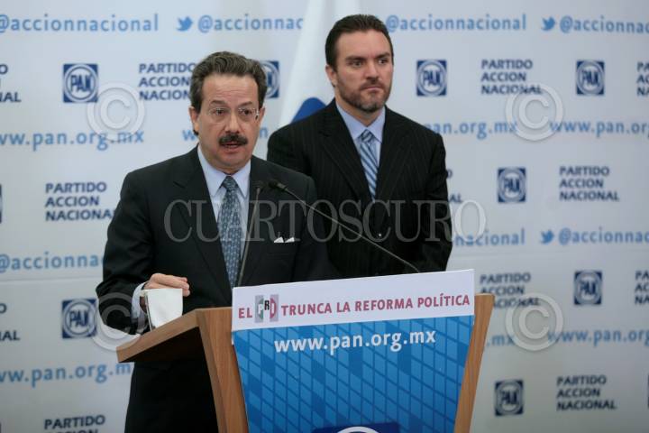 MÉXICO, D.F., 25OCTUBRE2011.- Juan Molinar Horcasitas, Secretario de Acción de Gobierno del PAN junto al senador Federico Döring Casar durante la conferencia que realizaron ante los medios de comunicación. FOTO: CUARTOSCURO.COM