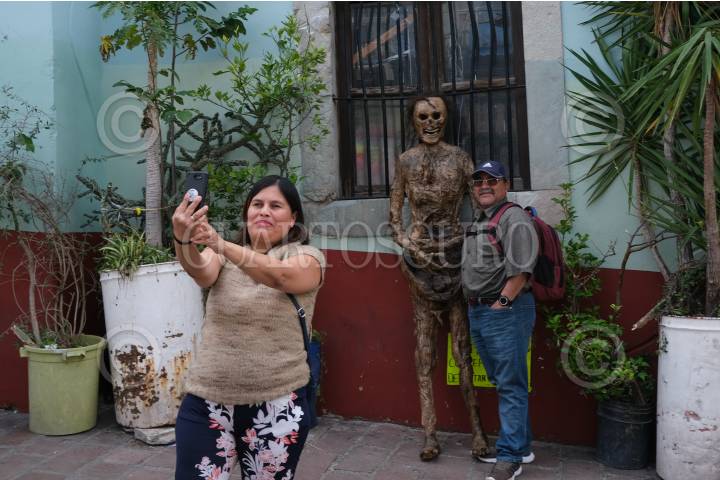 GUANAJUATO, GUANAJUATO, 23OCTUBRE2019.- Una pareja se toma una selfie con la imitación de una momia, en las calles del Centro Histórico. FOTO: GRACIELA LÓPEZ /CUARTOSCURO.COM
