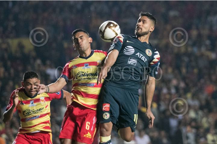 José Joaquín Martínez (Morelia) despeja un balón con la cabeza del área chica