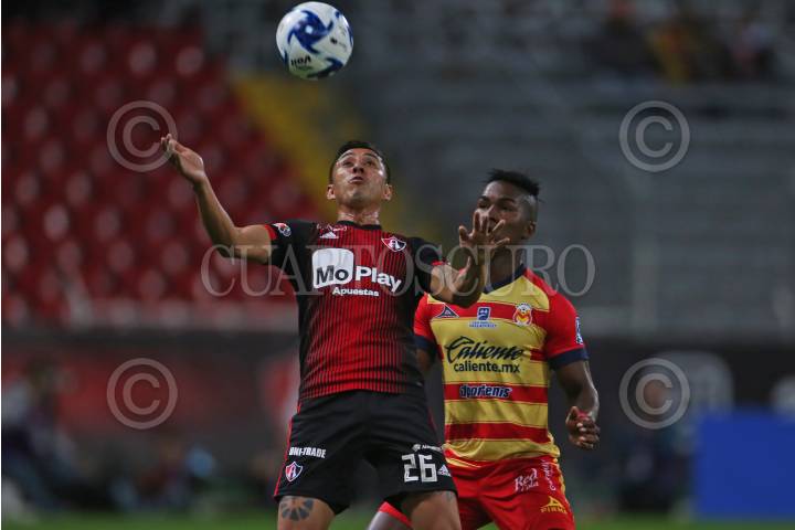 GUADALAJARA, JALISCO, 06FEBRERO2020.- Jorge Valdivia jugador de Monarcas disputa un balón con el contrario Faberth Alba de Atlas, esto en partido correspondiente a la Jornada 5 del Torneo Clausura 2020 de la Liga MX, en donde se enfrentan los Zorros del Atlas frente a las Monarcas Morelia, en partido que se lleva a cabo en el Estadio Jalisco, el marcador al momento es de 1-0 a favor del equipo visitante. FOTO: FERNANDO CARRANZA GARCIA / CUARTOSCURO.COM