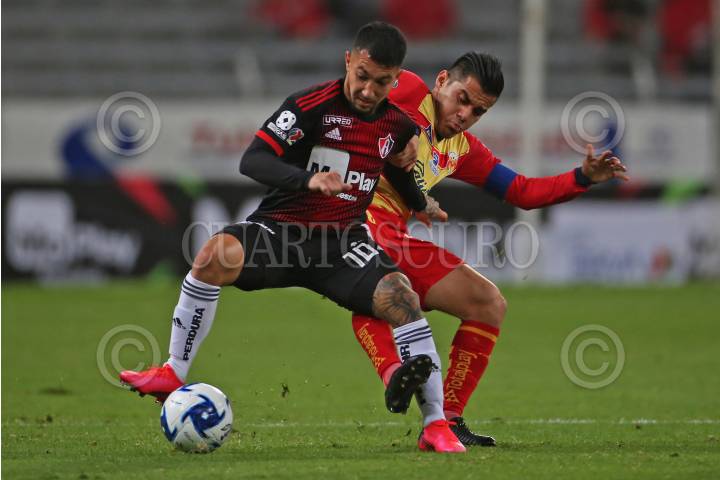 GUADALAJARA, JALISCO, 06FEBRERO2020.- Luciano Acosta jugador de Atlas disputa un balón con el contrario Aldo Rocha de Monarcas, esto en partido correspondiente a la Jornada 5 del Torneo Clausura 2020 de la Liga MX, en donde se enfrentan los Zorros del Atlas frente a las Monarcas Morelia, en partido que se lleva a cabo en el Estadio Jalisco, el marcador al momento es de 1-0 a favor del equipo visitante. FOTO: FERNANDO CARRANZA GARCIA / CUARTOSCURO.COM
