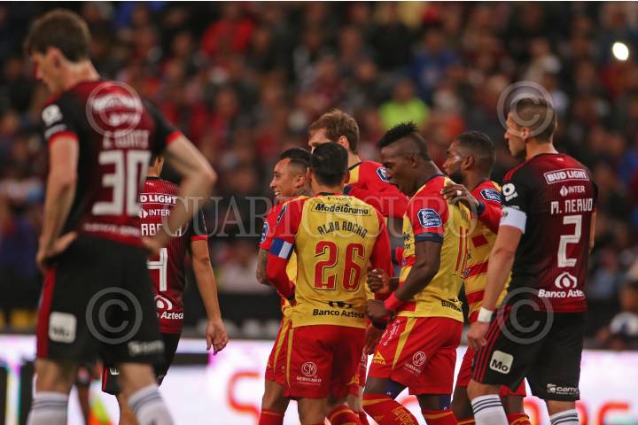 GUADALAJARA, JALISCO, 06FEBRERO2020.- Gabriel Achilier jugador de celebra su anotación con sus compañeros, esto en partido correspondiente a la Jornada 5 del Torneo Clausura 2020 de la Liga MX, en donde se enfrentaron los Zorros del Atlas frente a las Monarcas Morelia, en partido que se llevo a cabo en el Estadio Jalisco, el marcador al final es de 3-1 a favor del equipo visitante. FOTO: FERNANDO CARRANZA GARCIA / CUARTOSCURO.COM