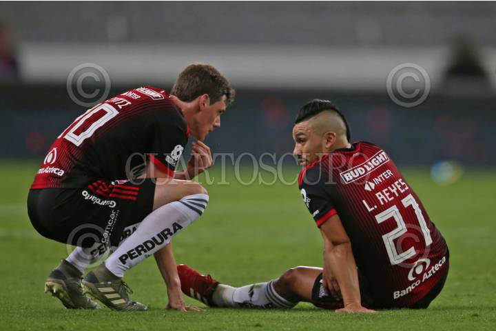 GUADALAJARA, JALISCO, 06FEBRERO2020.- German Conti y Lorenzo Reyes jugadores de Atlas dialogan después de una entrada fuerte del contrario, esto en partido correspondiente a la Jornada 5 del Torneo Clausura 2020 de la Liga MX, en donde se enfrentaron los Zorros del Atlas frente a las Monarcas Morelia, en partido que se llevo a cabo en el Estadio Jalisco, el marcador al final es de 3-1 a favor del equipo visitante. FOTO: FERNANDO CARRANZA GARCIA / CUARTOSCURO.COM
