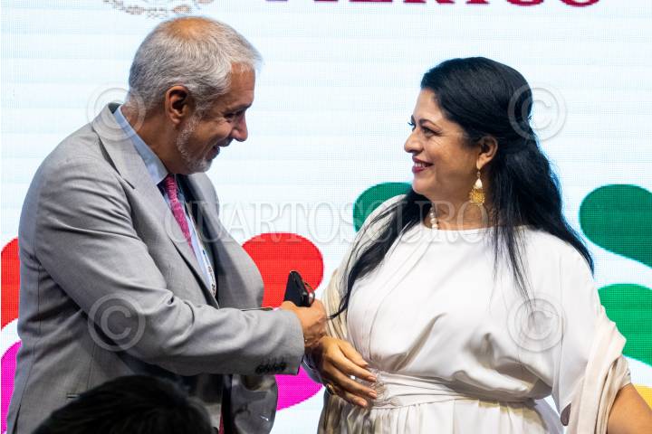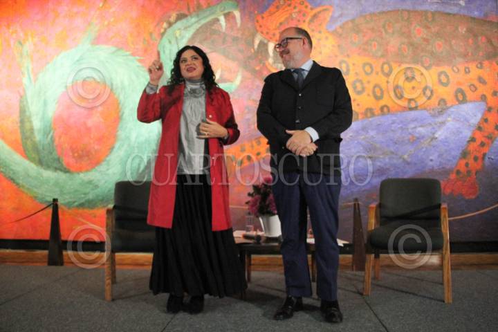 Ernesto Ottone, subdirector general de Cultura de la UNESCO, y Alejandra Frausto, recién nombrada presidente de la conferencia, durante la sesión inaugural de la conferencia mundial MONDIACULT 2022 en el Auditorio Nacional.