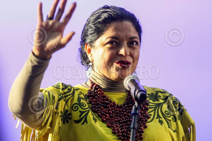 Alejandra Frausto, secretaria de Cultura, durante una conferencia de prensa Mondiacult 2022, A 40 años de la realización de la primera Conferencia Mundial sobre las Políticas Culturales (Mondiacult), realizada en el Museo Nacional de Antropología