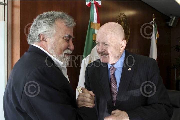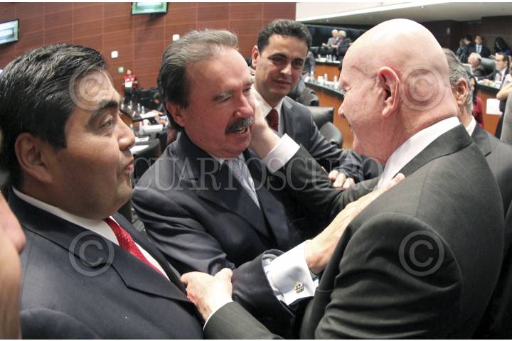 MÉXICO, D.F., 26FEBRERO2013.- Manuel Mondragón y Kalb, Comisionado Nacional de Seguridad saluda a Miguel Barbosa, coordinador del PRD en el senado y Emilio Gamboa Patrón coordinador del PRI en la cámara alta. FOTO: CUARTOSCURO.COM