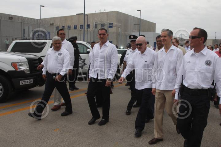 MIAHUATLÁN DE PORFIRIO DÍAZ, OAXACA, 14MAYO2013.- El comisionado Nacional de Seguridad (CNS) Manuel Mondragón y Kal puso en marcha la operación del Centro Federal de Readaptación (Cefereso) #13 de Miahutatlán de Porfirio Díaz, el cual se ubica en la agencia municipal de Mengolí de Morelos. El funcionario federal estuvo acompañado del gobernador, Gabino Cué y del director General de Banobras, Alfredo del Mazo. El centro tuvo un costo de 5 mil millones de pesos y se edificó en dos años, tiene capacidad para 2 mil 500 reos y el primer traslado se realizará el próximo jueves. Cuenta con diversa áreas de atención médica, biblioteca, de cómputo, canchas deportivas. La seguridad será brindada por tres grupos federales, mismos que cuidarán tanto el interior como el exterior. FOTO: ARTURO PÉREZ ALFONSO /CUARTOSCURO.COM
