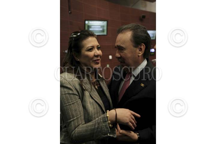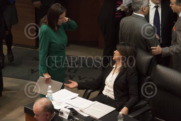 MÉXICO, D.F., 07MARZO2013.- La priista Cristina Díaz Salazar y Mónica Arreola Gordillo, senadora del PANAL, en sesión de la Cámara de Senadores. FOTO: MOISÉS PABLO /CUARTOSCURO.COM