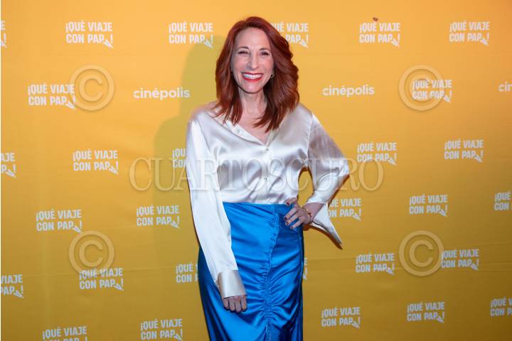 Mónica Huarte a su paso por la alfombra roja para presentar la película ¡Qué viaje con papá! en la Ciudad de México.