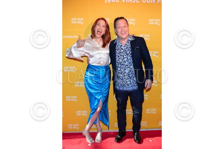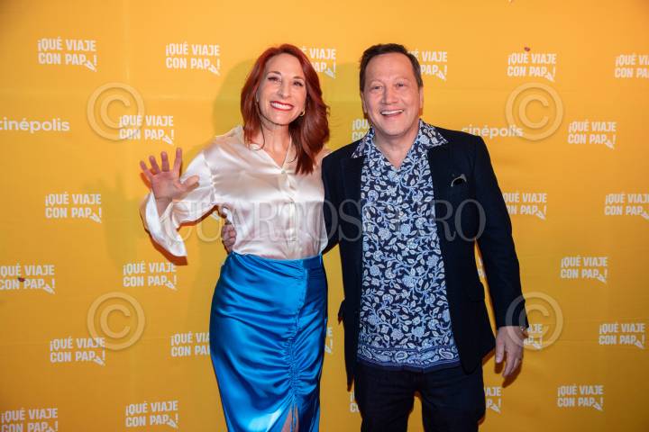 Mónica Huarte y Rob Schneider a su paso por la alfombra roja para presentar la película ¡Qué viaje con papá! en la Ciudad de México.