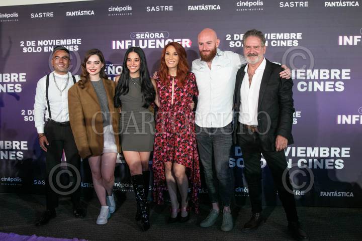 CIUDAD DE MÉXICO, 30OCTUBRE2023.- Memo Dorantes, Macarena García Romero, Diana Carreiro, Mónica Huarte, Carlos Santos (director), y Leonardo Daniel, estuvieron en la conferencia de prensa de la cinta Señora Influencer, la cual se estrenará el próximo 2 de noviembre en mil salas. FOTO: MOISÉS PABLO/CUARTOSCURO.COM