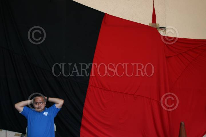 MÉXICO, D.,F 23MAYO2008.- A las tres de la tarde estallo la huelga por parte de integrantes y trabajadores del Sindicato Nacional de Trabajadores de la Industria y Televisión que laboran en Monitor. A las afueras de las instalaciones ubicadas en la calle la presa 212 en San Jeronimo colocaron mantas rojas con negro y en la pizarra de informacion anunciaron la venta del inmueble. FOTO: SAÚL LOPEZ/CUARTOSCURO.COM