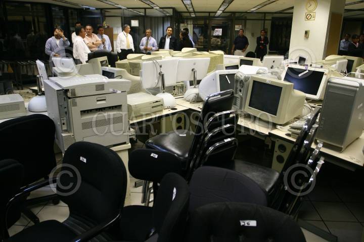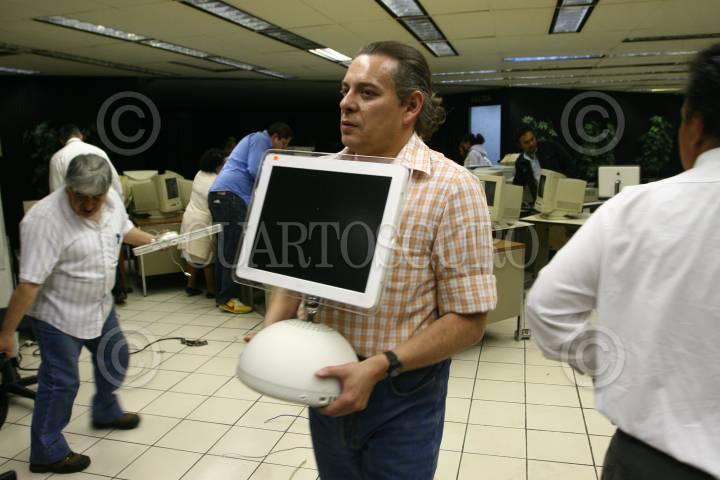 MÉXICO, D.F., 27ENERO2009.- Aspectos del equipo de trabajo de DIARIO MONITOR, despues que ésta tarde personal de la Secretaria de Hacienda junto con policias del D.F. inventariaran el equipo de trabajo de ésta editora para un posible embargo. Ésta tarde se dio a conocer en la pagina de internet de diario monitor donde expresa: MUY BUENAS TARDES les escribo a los amigos de monitor para informarles que en este momento, siendo las 15:25 hrs, un grupo de ejecutores de la secretaría de hacienda, acompañados de la policía del distrito federal los cuales, ingresaron a nuestro edificio sin orden judicial, están recorriendo libremente esta editorial, el heraldo de méxico, para seleccionar lo que van a sustraer de esta empresa informativa. como lo comente en días anteriores, lo mismo ha ocurrido con el seguro social, lo cual se repitió hoy también y me queda muy claro que está es una acción como la que ocurrió en méxico hace muchas décadas. GRUPO MONITOR. FOTO: SAÚL LÓPEZ/CUARTOSCURO.COM