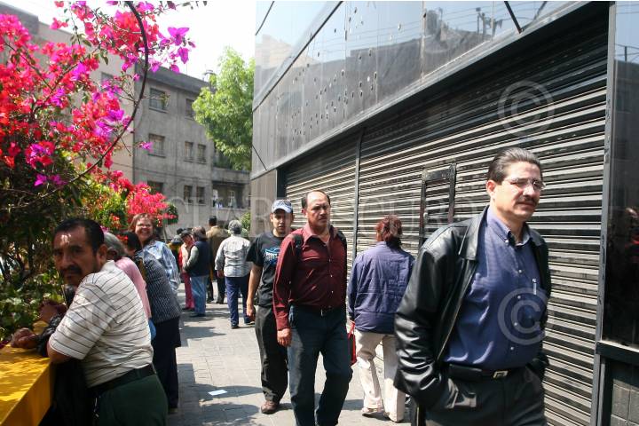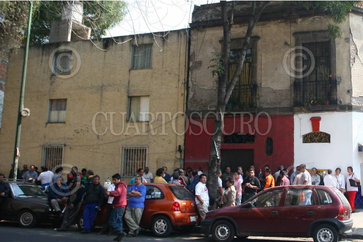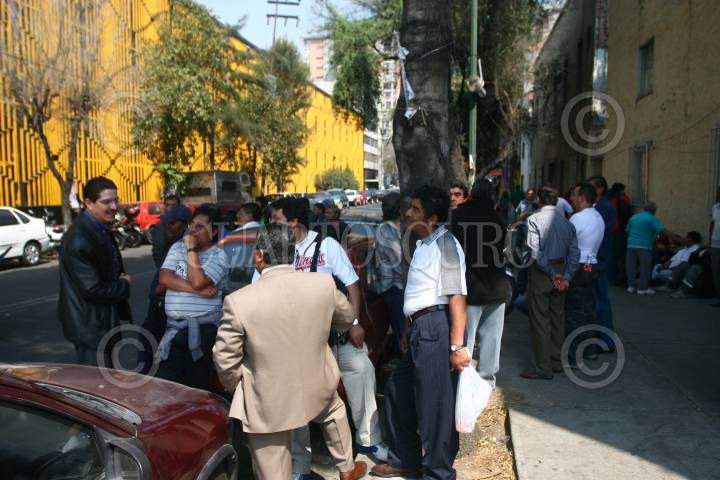 MÉXICO, D.F., 17FEBRERO2008.- Empleados de Diario Monitor esperan a las afueras de las instalaciones del periódico para recibir su liquidación. Dicho rotativo fue cerrado el dia de ayer, después de que la PGR tomara posesión del edificio. FOTO: SAUL LOPEZ/CUARTOSCURO.COM