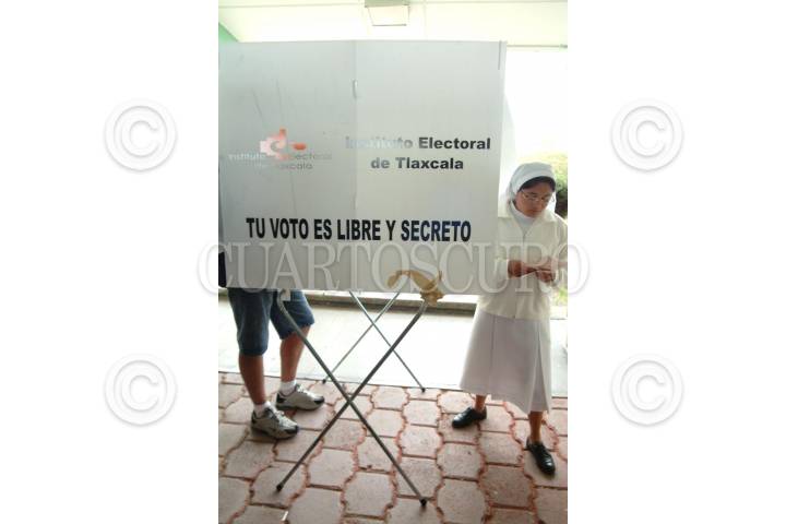 TLAXCALA, TLAXCALA 14NOVIEMBRE2004.- Una monja asistió a las urnas para elegir a el nuevo gobernador del estado así como a los demás representantes populares que se disputan en estas elecciones. FOTO: Iván Stephens/CUARTOSCURO.COM