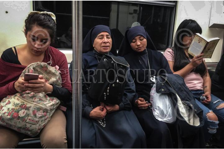 CIUDAD DE MÉXICO, 05ABRIL2019.- Monjas cierran los ojos para realizar sus oraciones durante su traslado en el transporte público Metro, en la Linea 2. FOTO: ANDREA MURCIA /CUARTOSCURO.COM