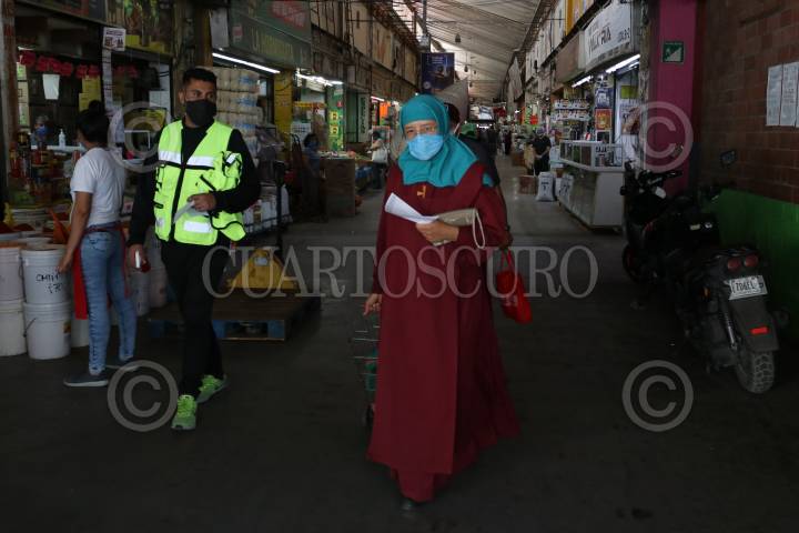 Una monja camina por los pasillos de la Central de Abastos