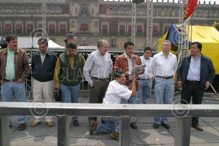 MEXICO, D.F. 31JULIO2006.- Gerardo Fernández Noroña, Jesús Ortega, Ricardo Monreal, Leonel Cota Montaño, Horacio Duarte y Manuel Camacho Solís integrantes de la coalición Por el Bien de Todos durante la conferencia de prensa que ofrecieron a los medios de comunicación en el plantón que mantienen el el zócalo capitalino. FOTO: Nelly Salas/CUARTOSCURO.COM