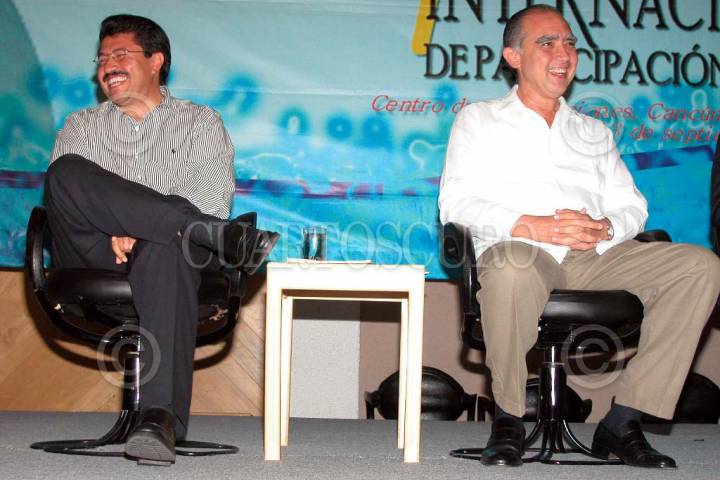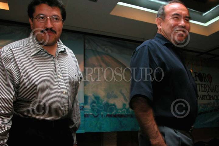 Los gobernadores de Zacatecas, Ricardo Monreal, y de Sinaloa, Juan S. Millán, asistieron a la inauguración del Primer Foro Internacional de Participación Social, que se desarrolla en Cancún y que culminará mañana. Para su clausura, se anunció la presencia del secretario de Gobernación, Santiago Creel. FOTO: Elizabeth Ruiz/CUARTOSCURO.COM