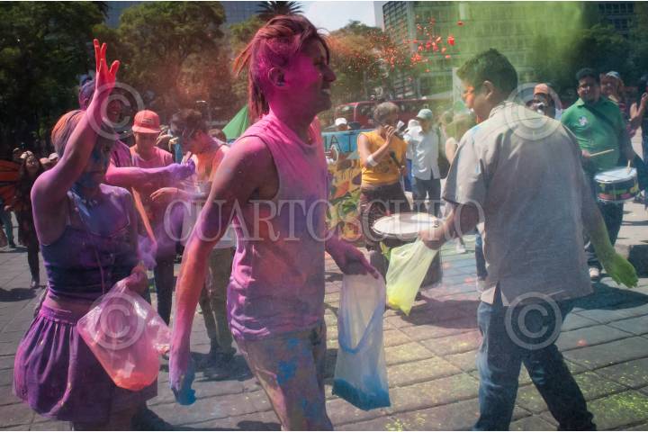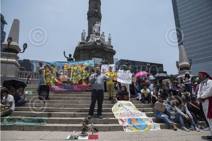 CIUDAD DE MÉXICO, 19MAYO2018.- Un grupo de personas se reunieron en la glorieta del Ángel de la Independencia para manifestar su rechazo a la siembra de los maíces genéticamente alterados y exigir al gobierno federal la cancelación de los permisos a las empresas que los distribuyen, principalmente a Monsanto. FOTO: DIEGO SIMÓN SÁNCHEZ / CUARTOSCURO.COM