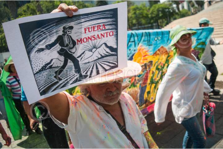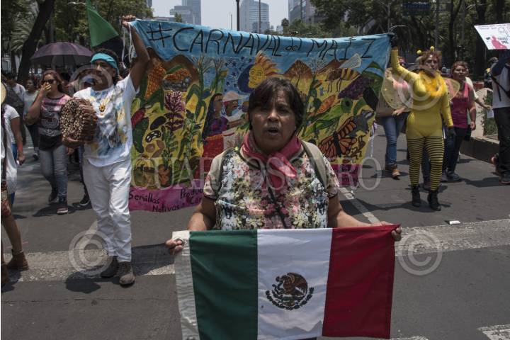 CIUDAD DE MÉXICO, 21MAYO2016.- Decenas de organizaciones sociales y ambientalistas, como Greenpeace, realizaron una marcha para manifestar su rechazo a la siembra de los maíces genéticamente alterados y exigir al gobierno federal la cancelación de los permisos a la empresas que los distribuyen, principalmente a Monsanto. FOTO: DIEGO SIMÓN SÁNCHEZ /CUARTOSCURO.COM